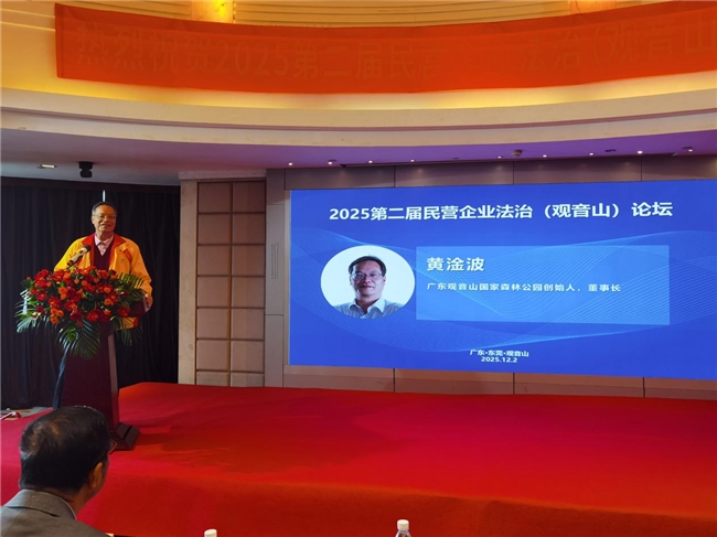 广东观音山国家森林公园创始人、董事长黄淦波在致辞中与嘉宾分享了民营企业法治实践的“观音山”经验,以多年来艰辛坎坷的维权经历,见证了不断完善的对于民营企业和民营企业家合法权益保护的法治进程。